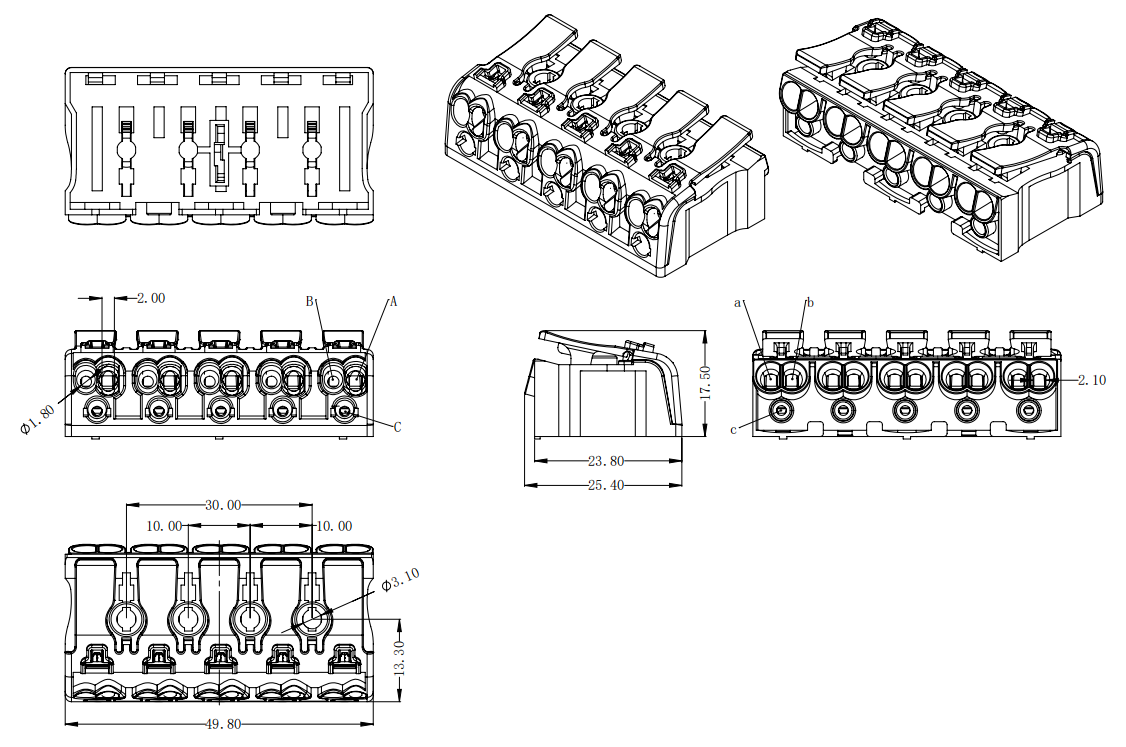 | B孔 | 實(shí)芯線(xiàn) | 0.5-1.5mm2 | AWG 16-20 |