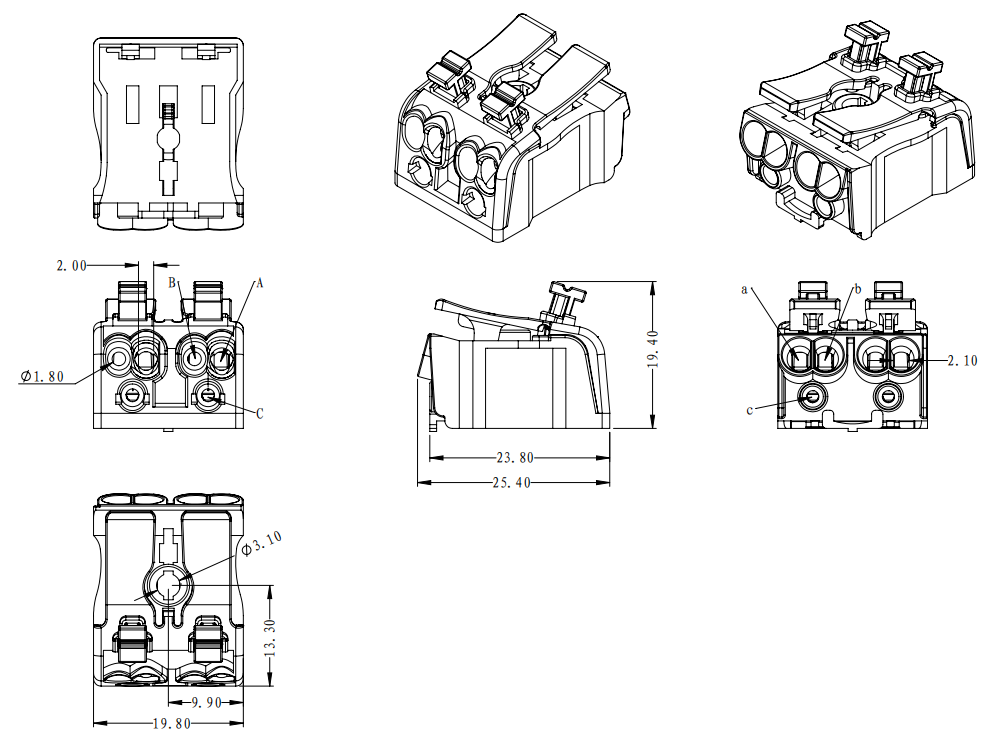 | B孔 | 實芯線 | 0.5-1.5mm2 |